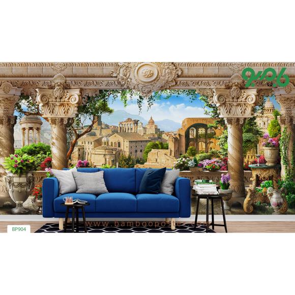 پوستر دیواریbp-904 بامبو ، که طرح یک شهر قدیمی با خانه هایی سنتی با معماری اروپایی است. در این طرح ستون های بتنی بسیار زیبایی را می بینیم گویی که از ایوان یک قصر مربوط به قرون وسطی این شهر قدیمی را می بینیم. رنگ های شاد و متنوع آن نیز جالب توجه است. طرح آن نیز مناسب برای تمامی فضاهای داخلی خانه از قبیل اتاق خواب و سالن پذیرایی است.